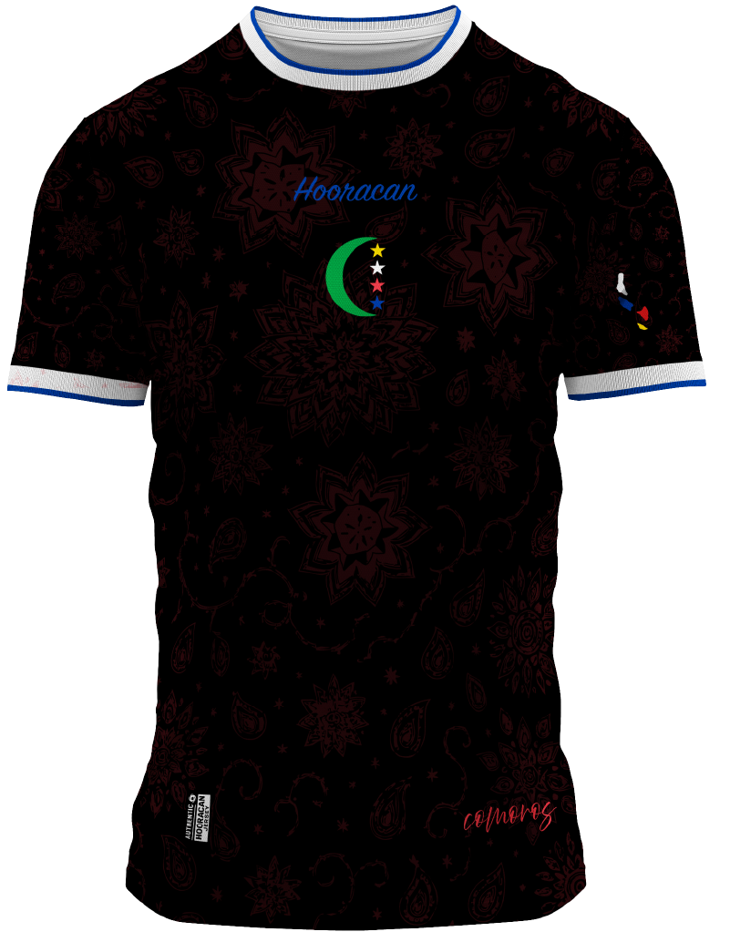 Maillot noir orné de motifs traditionnels comoriens en ton sur ton.